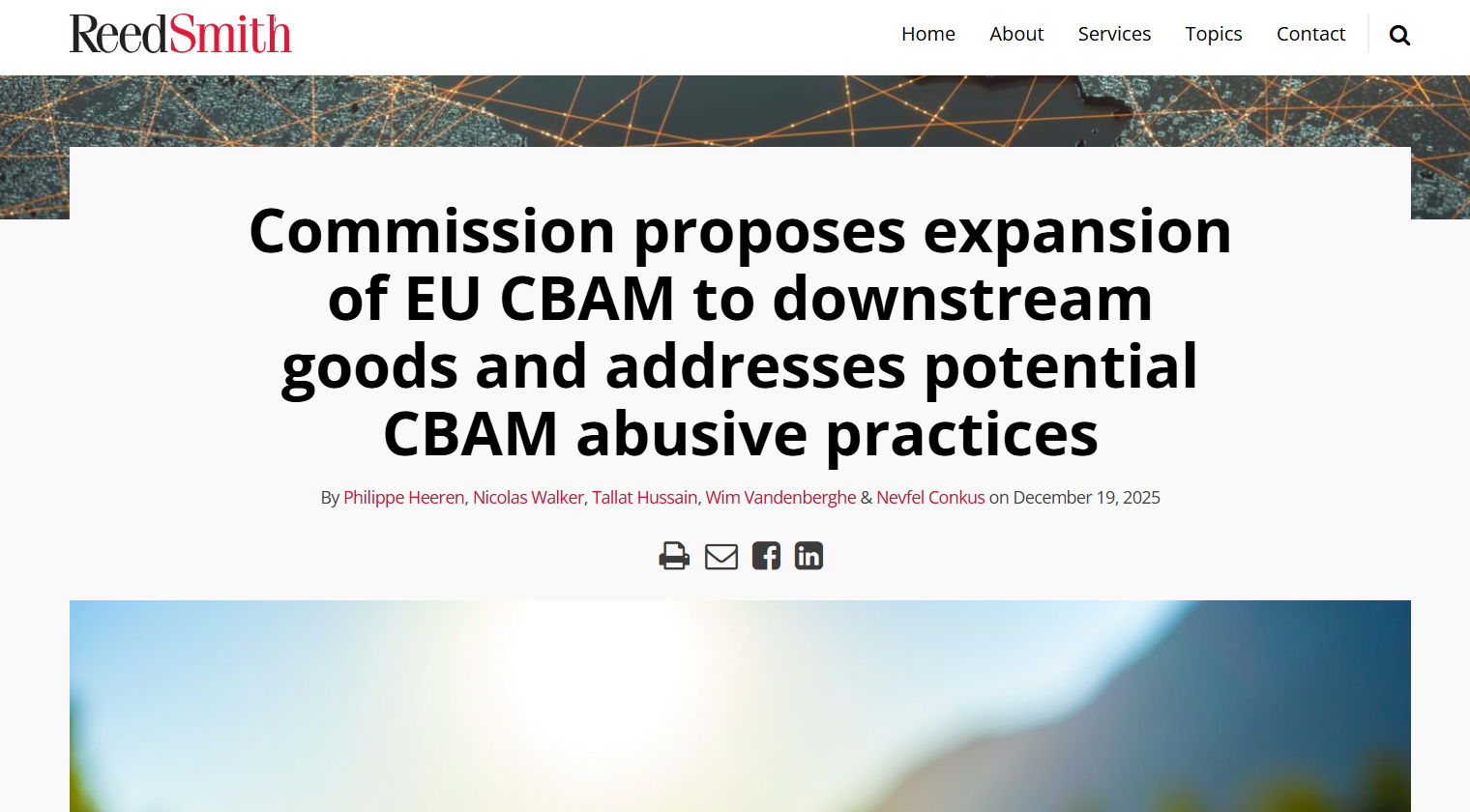 2025年12月17日,欧盟委员会集中发布了一套关键文件,涵盖执行法规、授权法案及立法提案。这标志着碳边境调节机制(CBAM)正式结束为期两年的“报告义务过渡期”,将于 202...2025-12-22