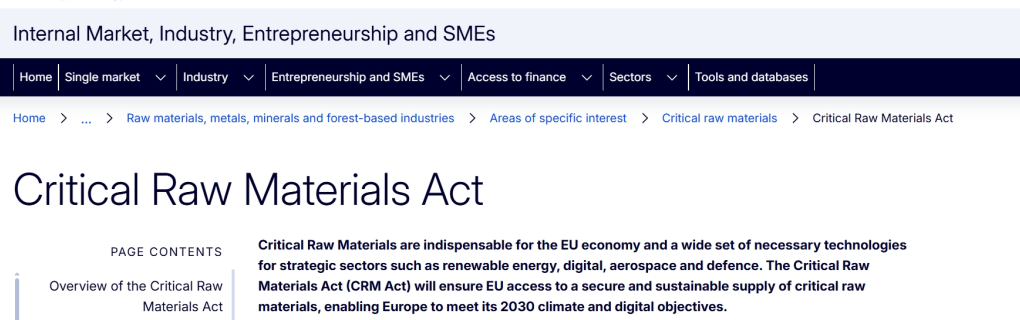 2024年5月23日,欧盟《关键原材料法案》(CRMA)正式生效,标志着全球资源战略格局发生重大转变。该法案是欧盟应对地缘政治紧张、减少对外依赖、构建战略性产业自主可控能力的关键举措,旨在确保其绿色与数字转型所需的原材料供应安全,并对全球产业链,特别是中国相关产业和企业产生深远影响。