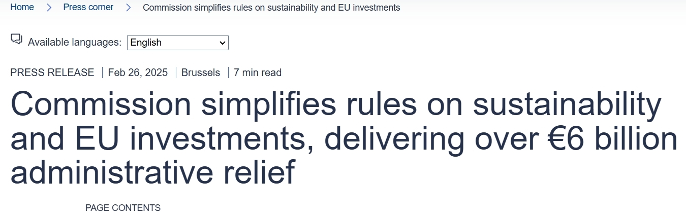 欧盟委员会主席乌尔苏拉·冯德莱恩表示:“我们正在提出首个广泛简化的提案。欧盟企业将受益于可持续金融报告、可持续尽职调查和分类法的简化规则。这将使我们的企业更容易遵守规则,同时确保我们坚定地朝着脱碳目标前进。更多的简化措施即将推出。”