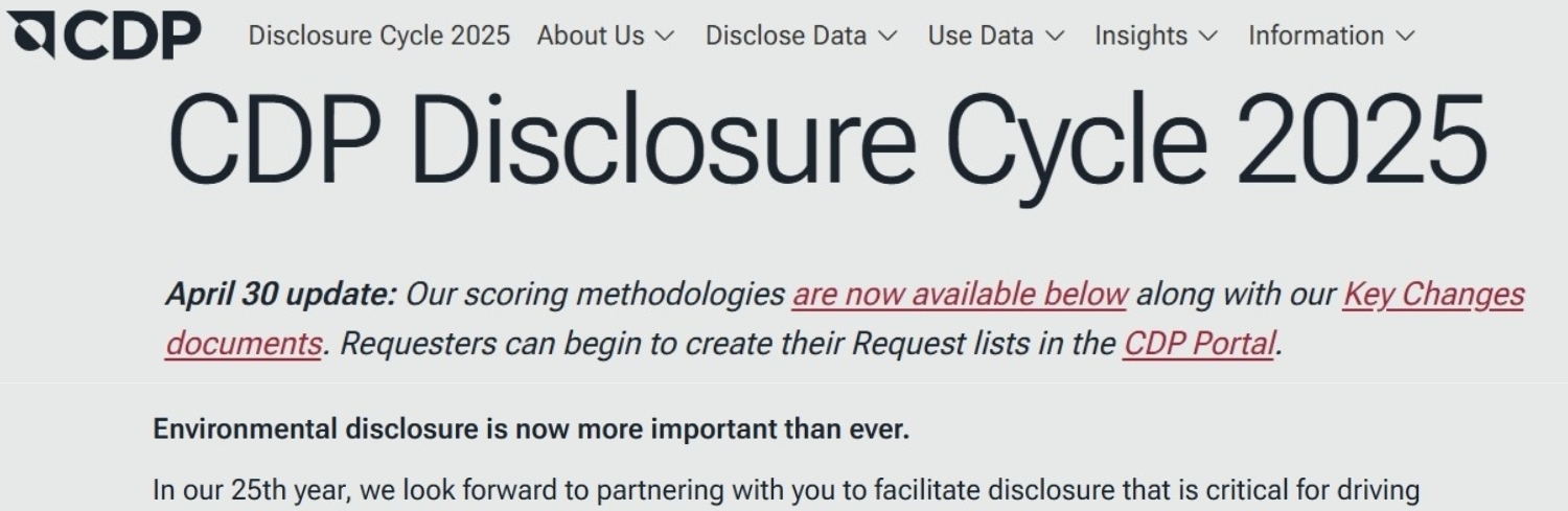 在全球气候风险日益加剧的当下,环境信息披露已成为资本市场和供应链评估企业韧性、透明度与责任的关键参考指标。CDP(碳信息披露项目)作为全球领先的环境信息披露平台,为企业提供了一个展示其环境管理能力和应对气候变化行动的重要机会。2025年度的CDP披露季即将到来,企业需要提前做好充分准备,以确保在披露中展现良好的环境管理绩效。