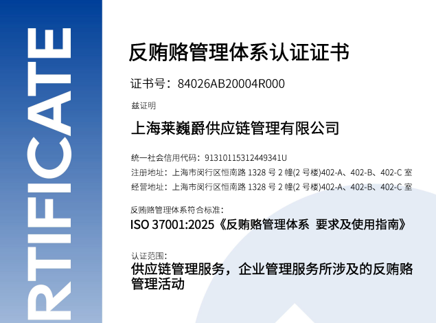筑牢合规基石,赢得全球信任:Leverage助力宁波伏特完成ISO 37001反贿赂管理体系认证在全球商业竞争日益注重合规与透明度的大潮中,企业的道德治理与廉洁诚信表现正成为其...2026-01-12